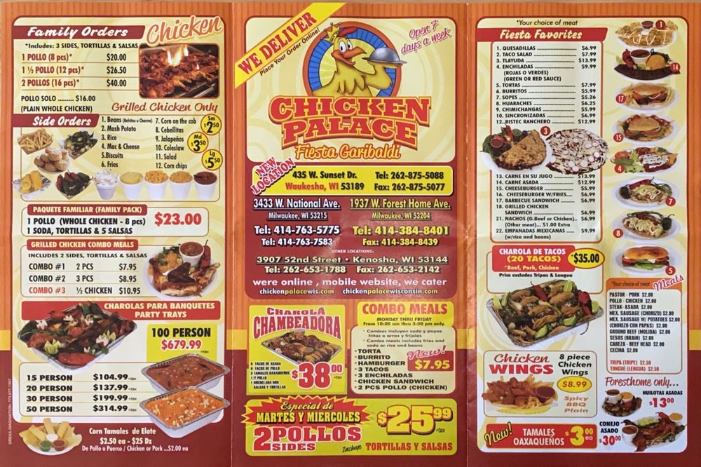 Chicken Palace is a distinctive restaurant based in the United States, renowned for its authentic Mexican cuisine that echoes the rich traditions of the Mexico ethnic tribe. As a leader in the restaurant industry, Chicken Palace is celebrated for its unique blend of culinary expertise, personalized service, and commitment to quality. The restaurant uses only the freshest ingredients in crafting its dishes, ensuring that every meal is not only delicious but also wholesome. From its signature chicken dishes to an array of traditional Mexican delicacies, Chicken Palace caters to a diverse clientele with an appetite for flavorful, well-prepared meals. The restaurant's menu is a testament to Mexico's rich culinary heritage, offering a myriad of options for both meat-lovers and vegetarians. With its strong online presence, customers can easily navigate through its website to view the menu, place orders, or make reservations, enhancing the overall dining experience.