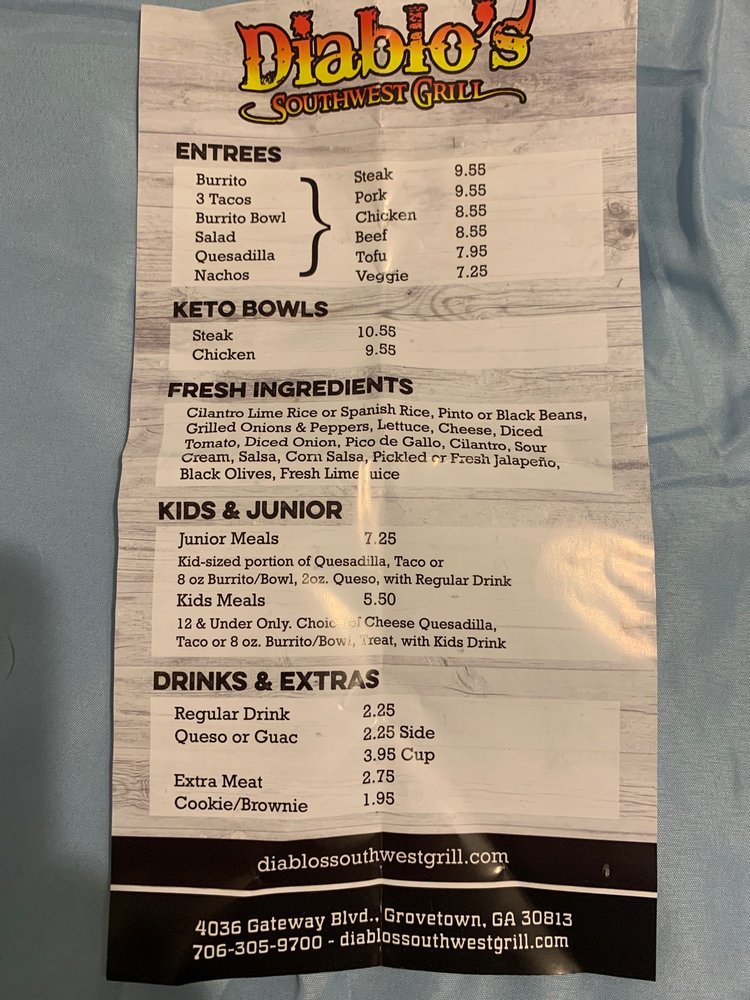 Diablo's Southwest Grill is a vibrant and dynamic restaurant that offers an authentic Southwest dining experience right in the heart of the United States. Driven by a passion for Mexican culinary traditions, this restaurant is dedicated to bringing the rich flavors and unique cooking styles of Mexico's ethnic tribes to its diverse clientele. With a menu bursting with bold tastes and fresh ingredients, Diablo's Southwest Grill specializes in a variety of Mexican dishes, including generously loaded burritos, sizzling fajitas, and delectable street tacos. Each dish is crafted with meticulous attention to detail, ensuring that every bite captures the essence of traditional Mexican cuisine. With its warm, welcoming atmosphere and commitment to quality service, Diablo's Southwest Grill has quickly become a go-to destination for food lovers seeking a taste of the Southwest in the U.S.
