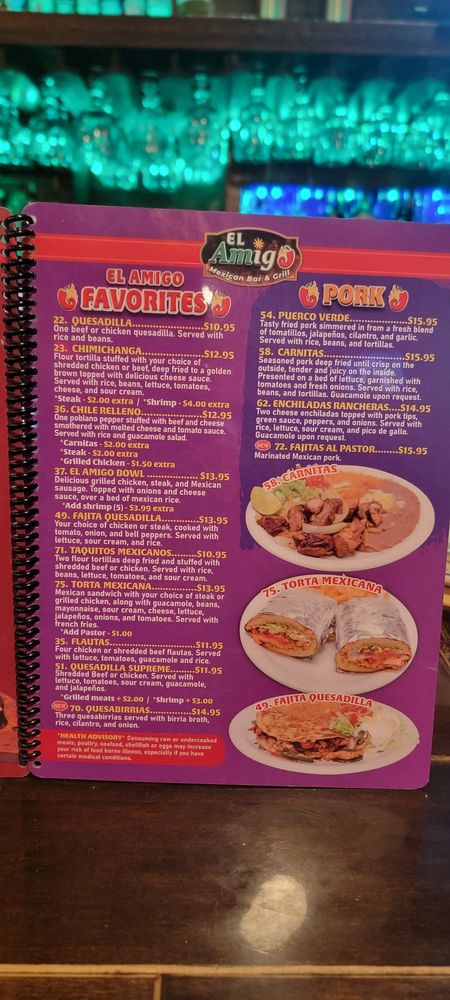 El Amigo Mexican Bar and Grill is an authentic, U.S.-based Mexican restaurant, bringing the vibrant flavors and festive atmosphere of Mexico to your table. Situated in the heart of the culinary scene, El Amigo offers a unique dining experience that combines the traditional and contemporary aspects of Mexican cuisine. With a menu that features diverse, flavorful dishes ranging from sizzling fajitas to hand-crafted tacos, every dish is a testament to their culinary roots and commitment to quality. Their food, steeped in the rich culinary heritage of the Mexico ethnic tribe, is prepared using time-honored recipes and the freshest ingredients, ensuring a taste that is as genuine as it is delicious.