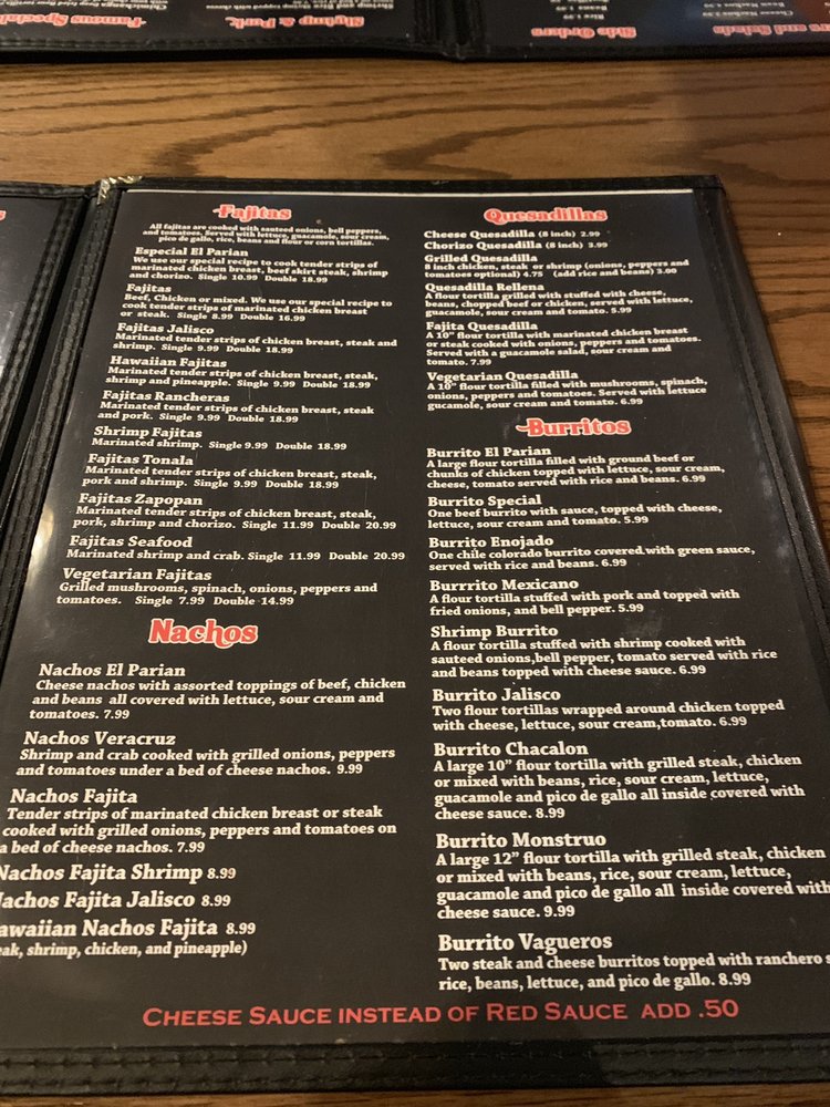 El Parian is an authentic Mexican restaurant situated in the heart of the United States, offering an immersive culinary journey into the rich heritage of Mexico. A family-owned establishment, El Parian is committed to delivering an exceptional dining experience that encapsulates the vibrant flavors, traditions, and warmth of Mexico. Their menu showcases a broad spectrum of Mexican cuisine, from the sizzling fajitas and succulent tacos to the beloved enchiladas and chiles rellenos, all meticulously prepared with the freshest ingredients. The restaurant's dedication to authenticity is further exemplified by their use of traditional cooking techniques, infusing each dish with the distinct flavors and aromas that are intrinsically linked to the Mexican culinary culture.