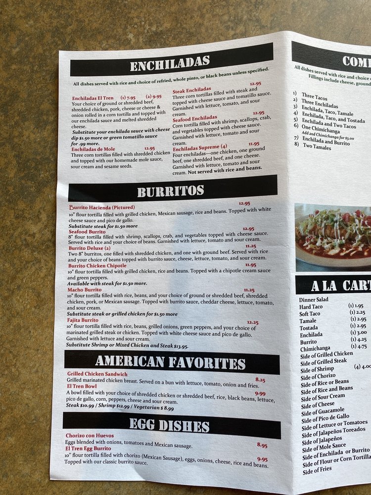 El Tren Grill is a top-rated Mexican restaurant located in the United States, serving a wide range of authentic Mexican cuisine that reflects the rich culinary traditions of Mexico. This family-owned business prides itself on creating a warm, inviting atmosphere paired with exceptional food and superior customer service. The restaurant uses only the freshest ingredients, sourced locally where possible, to create traditional Mexican dishes bursting with flavor. From mouth-watering tacos and enchiladas to flavorful fajitas and quesadillas, El Tren Grill offers a diverse menu that caters to a variety of taste preferences. The restaurant also provides vegetarian and gluten-free options, ensuring a delightful experience for all patrons. Their commitment to authenticity and quality has earned them a strong reputation in the restaurant industry and high ratings from satisfied customers.