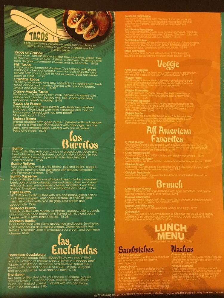 El Valle Family Mexican Restaurant is a revered culinary destination that offers authentic Mexican cuisine, located in the heart of the United States. A family-owned and operated restaurant, El Valle takes pride in its rich cultural heritage linked to the Mexico ethnic tribe. The restaurant is renowned for its traditional recipes, handcrafted with freshest local ingredients, a clear reflection of Mexican culture and culinary artistry. Offering an extensive menu that caters to every palate, El Valle Mexican Restaurant has successfully carved a niche for itself in the highly competitive restaurant industry by offering a unique blend of flavors, textures, and colors that mesmerize and entertain the senses.