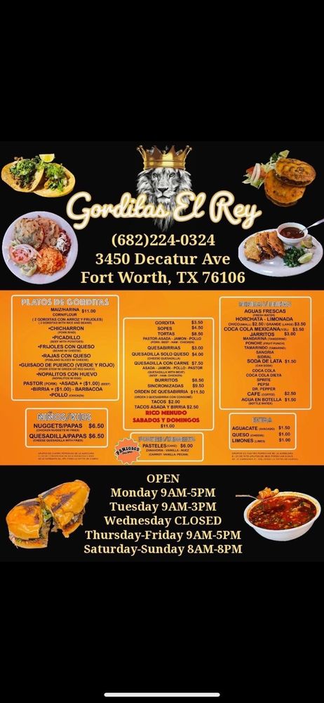 Gorditas El Rey is an authentic Mexican restaurant nestled in the heart of America. Renowned for their delectable gastronomy, they specialize in offering traditional Mexican cuisine with a particular emphasis on 'Gorditas', a signature dish from the rich culinary heritage of Mexico. The restaurant encapsulates the vibrant spirit of Mexican culture, offering its patrons a unique dining experience steeped in the ethnic traditions of Mexico. As a family-owned business, Gorditas El Rey takes pride in preserving the authenticity of its recipes, ensuring every meal is a true reflection of Mexican flavors.