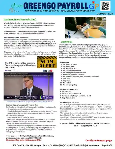 Green 60 Payroll Services is a premier U.S.-based company providing top-tier accounting solutions to businesses of all sizes. Catering primarily to the needs of small and medium-sized enterprises, they offer comprehensive payroll management, tax filing, employee benefit administration, and other related services. Their team of experienced accountants and financial experts is dedicated to ensuring accurate, compliant, and timely payroll processing, thus enabling clients to focus more on their core business operations. With their deep understanding of the complexities of U.S. tax laws and regulations, Green 60 Payroll Services has become a trusted partner for businesses across the country, helping them navigate the often confusing world of payroll and taxation.