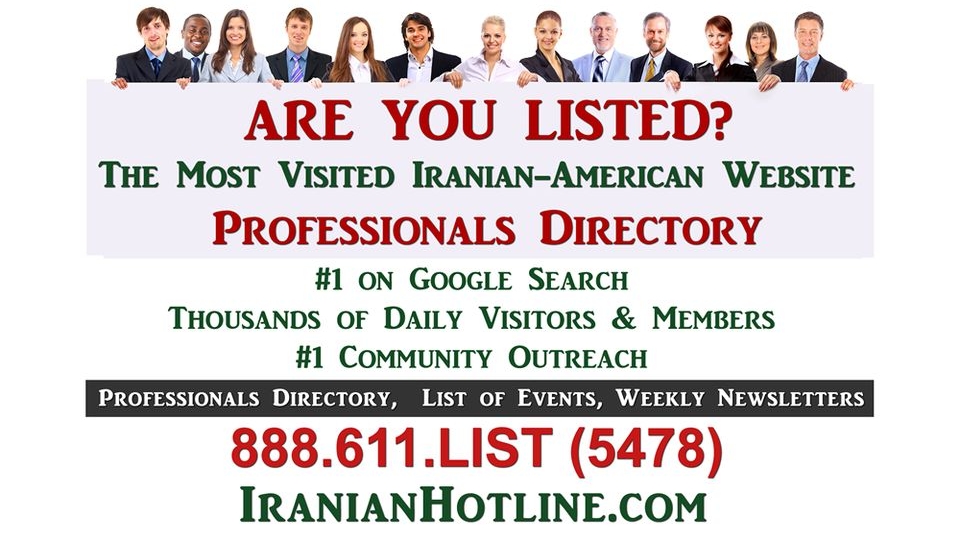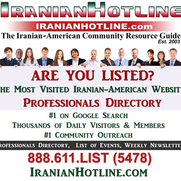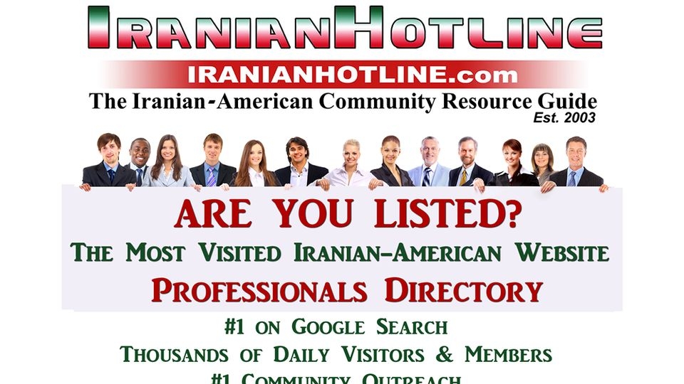 IranianHotline is The Iranian-American Community Information & Connection Center Online, established on 2003. The main services are: Promoting Events, Unique Professionals Directory, Business Directory, Connecting Organizations, sending e-Newsletters to over 13000 members every week at no charge, Jobs, Art & Music, Articles, Reports, Videos and many more community information. All in one place! Please visit www.IranianHotline.com , join for free, and enjoy informative free weekly e-newsletters!