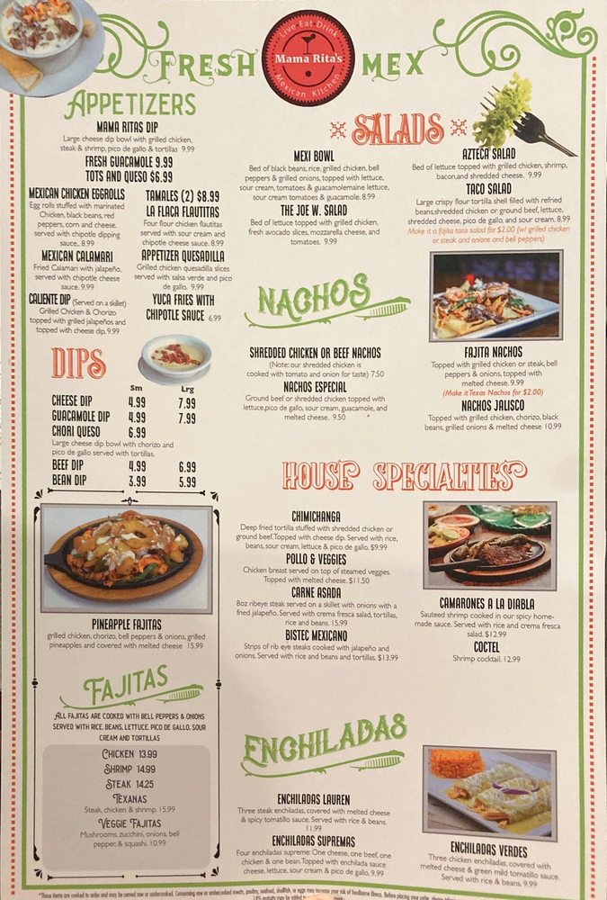 Mama Rita's Mexican Kitchen takes immense pride in its cultural roots associated with the Mexico ethnic tribe. This tribal association is evident in the restaurant's intricate menu that offers a wide range of traditional dishes, each carrying a unique tribal influence. From flavorful enchiladas to hearty tacos and refreshing margaritas, every dish is prepared with meticulous attention to detail and a deep respect for the Mexican culinary tradition. They also offer a variety of vegan and gluten-free options, ensuring that everyone can enjoy a taste of Mexico. The restaurant's warm, inviting atmosphere, combined with its delicious offerings, provides an immersive experience that transports diners to the heart of Mexico. With its commitment to authenticity, quality, and customer satisfaction, Mama Rita’s Mexican Kitchen is not just a restaurant, it's a celebration of Mexico's rich culinary heritage in the heart of America.