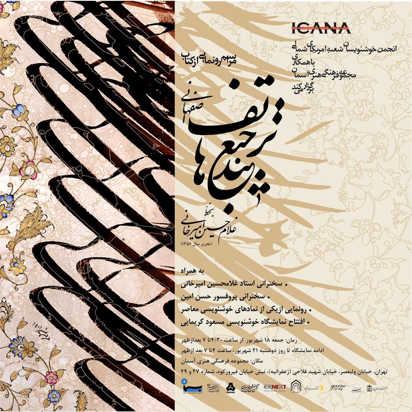 Calligraphy Master’s Degree from Iranian Calligraphers Association (ICA) in Nast’aligh and Shekasteh-Nasta’ligh, two Style of Persian Calligraphy