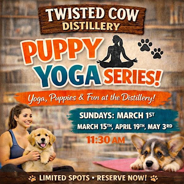 5th of Puppy Yoga Series at Twisted Cow Distillery