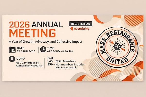 Get ready for the annual gathering of restaurant owners and industry members at Mass Restaurants United - Annual Meeting!