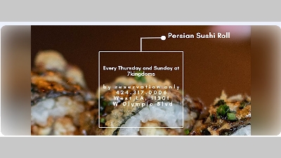 This event is perfect for families, team-building events, or date nights. In this hands-on class in West Los Angeles you can learn how to roll your own delicious Tuna, Salmon, and Persian fusion roll while enjoying your favorite drink in a fun and engaging environment .