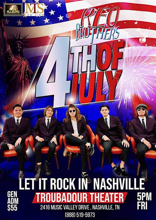 Come see the REO Brothers from Tacloban live in NASHVILLE, TN on July 4, 2025 at 5:00pm